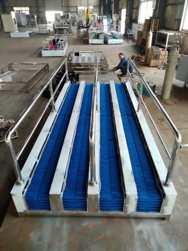 通道式清洗工作平臺(tái),實(shí)現(xiàn)了人員無(wú)需停留,清洗刷選用進(jìn)口耐磨尼龍絲材料制成。
