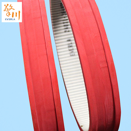 本樣品皮帶的特殊加工是:皮帶表面燒接t型擋板pu同步帶加工說明: