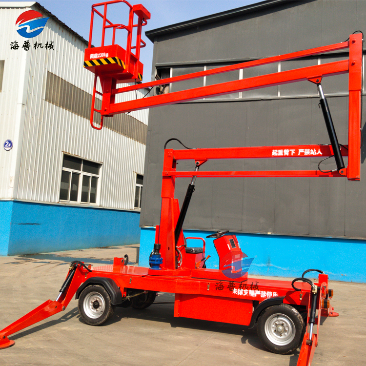 曲臂式升降平臺分為:拖車式升降平臺、車載式升降平臺,曲臂高空作業(yè)平臺、自走式升降平臺。
