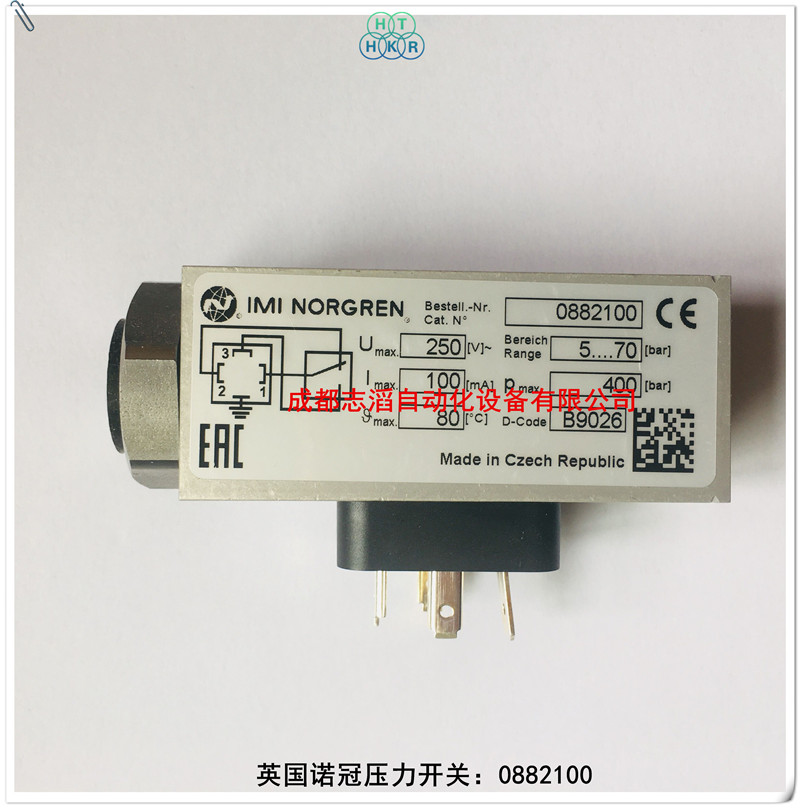 0882100英國(guó)諾冠imi norgren壓力開關(guān)技術(shù)參數(shù)簡(jiǎn)介:適用電壓為250v、壓力工作范圍為5-70bar、適用電流為100ma、適用壓力為400bar、適用溫度為80攝氏度、產(chǎn)地為捷克、主要應(yīng)用在氣動(dòng)控制柜!