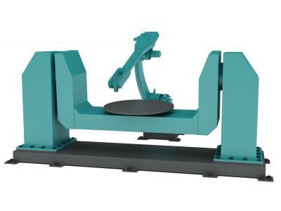 雙軸c型變位機(jī)主要由轉(zhuǎn)臺(tái)座和一軸座以及工作盤組成,采用伺服電機(jī)驅(qū)動(dòng)以及rv精密減速機(jī)傳動(dòng)組成。主體結(jié)構(gòu)采用板材焊接制作而成。工作盤表面加工有安 裝定位工裝的標(biāo)準(zhǔn)螺紋孔,并進(jìn)行發(fā)黑防銹處理。采用黃銅作為導(dǎo)電機(jī)構(gòu),可以起到良好的導(dǎo)電效果。配備快速接頭連接電器機(jī)構(gòu),方便現(xiàn)場安 裝及管理。