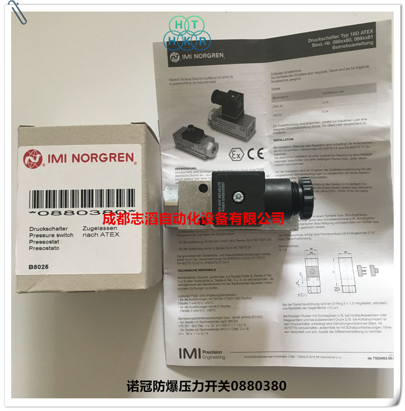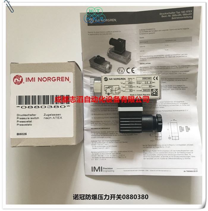 0880380英國諾冠iminorgren防爆壓力開關(guān)技術(shù)參數(shù):工作壓力范圍0.5-8bar、切換壓差0.25-0.65bar、承受壓力80bar、切換時間100、壓力開關(guān)材料鋁、密封件fkm/ms、接口尺寸g1/4、重量0.2kg!