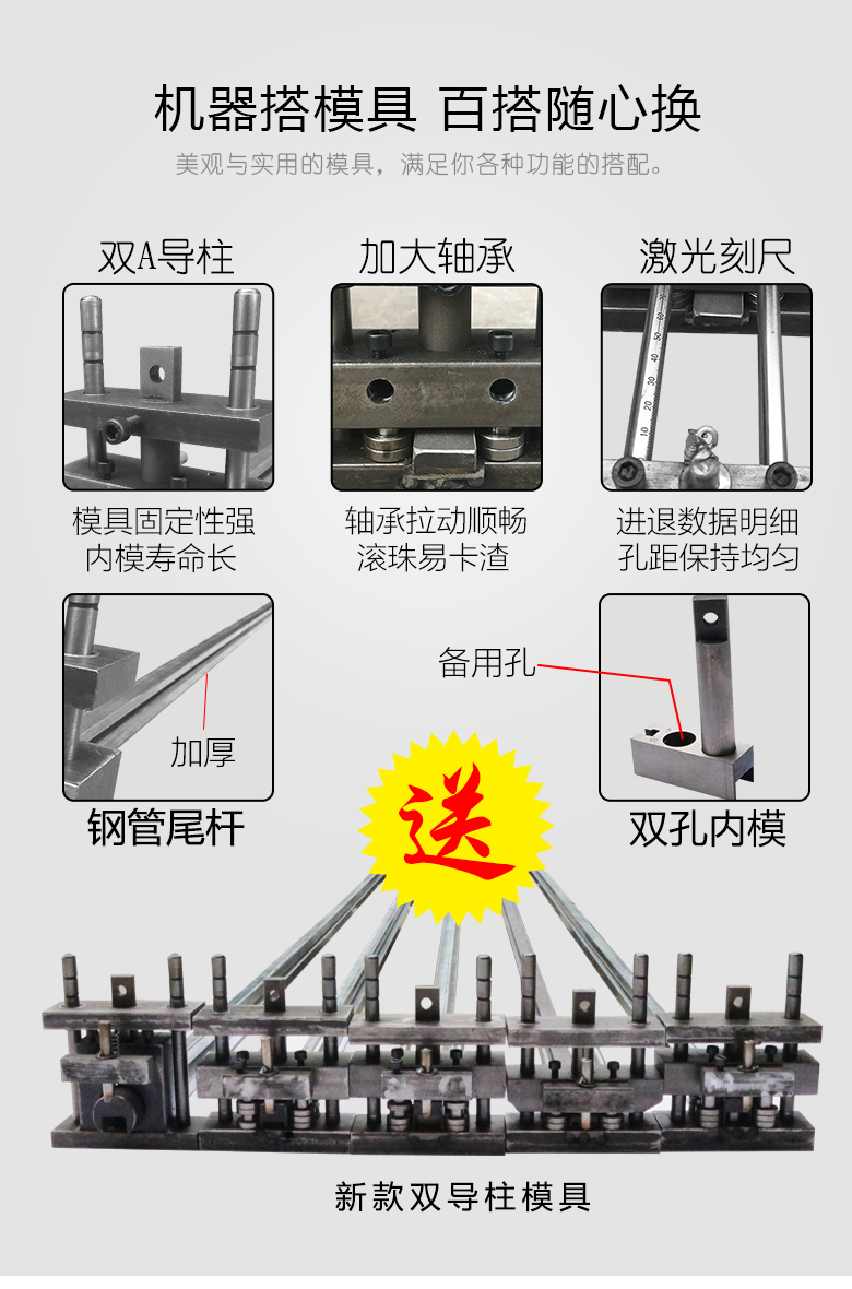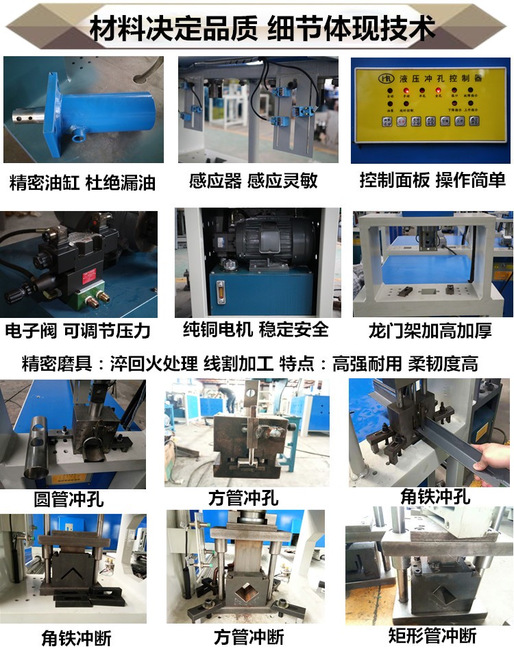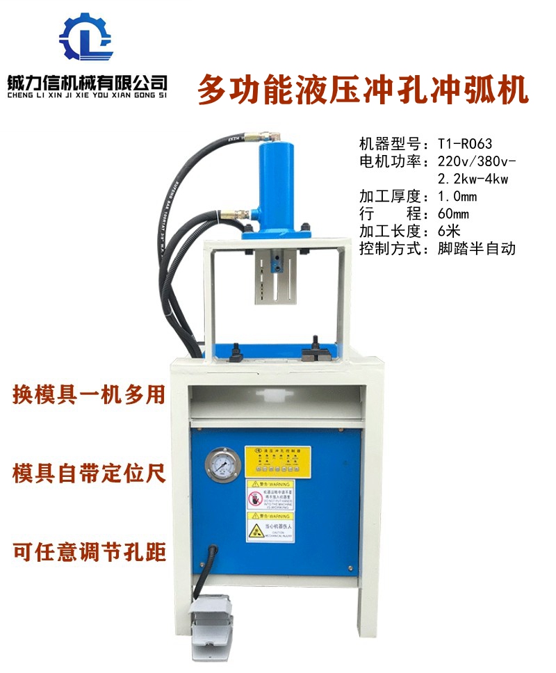 液壓高速防盜網(wǎng)沖孔機(jī)生產(chǎn)效率高,可沖樓梯扶手圓弧、圓管、欄桿、方管等各類五金加工沖孔,快速調(diào)節(jié)行程根據(jù)不同的管材調(diào)節(jié)可半孔/全孔切換,設(shè)計(jì)獨(dú)特?zé)o需專業(yè)人員安 裝模具,調(diào)試模具簡單、裝卸快速,機(jī)械可定做多個(gè)工位。