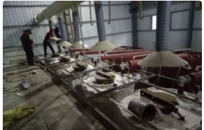 亞克力在各行業(yè)中有著廣泛應用,而利用廢舊亞克力裂解再生獲得甲 基丙烯酸 甲 酯單體,實現(xiàn)亞克力的循環(huán)利用,符合循環(huán)經(jīng)濟的政策,具有較好的經(jīng)濟效益和社會效益, 因而在我國有了較快的發(fā)展,F(xiàn)有的裂解設備為間歇式裂解,廢舊亞克力由人工直接投入 用明火加熱的裂解釜裂解,物料堆積釜內(nèi),與裂解釜壁接觸,由于受熱不均勻,裂解溫度不 能控制,成品質(zhì)量差、回收率低、浪費大,裂解釜易結垢、結焦,清理時需打開裂解釜蓋, 人工鏟焦,清理困難,勞動強度大,且人工清焦易損壞裂解釜,清焦時殘留在釜中的尾氣散 發(fā)易造成環(huán)境污染并且易燃易爆氣體的無序擴散,存在嚴重的安 全隱患。另由于間歇生產(chǎn), 勞動效率低下,裂解一定量的廢舊有機玻璃,往往需要很多裂解釜,占地大,效率低,因此有 必要提出改進。提供一種可連續(xù)加料、連續(xù)加熱裂解且將殘留氣體充分 徹底冷凝并輕松將清理滾筒內(nèi)壁殘渣的傾動式連續(xù)亞克力裂解爐。