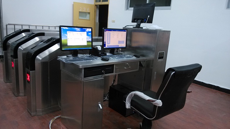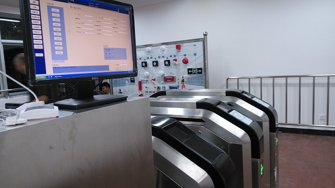 在車站非付費區(qū)與付費區(qū)之間安 裝三通道檢票翼閘,其中一通道為雙向,其余一通道進站、一通道出站;