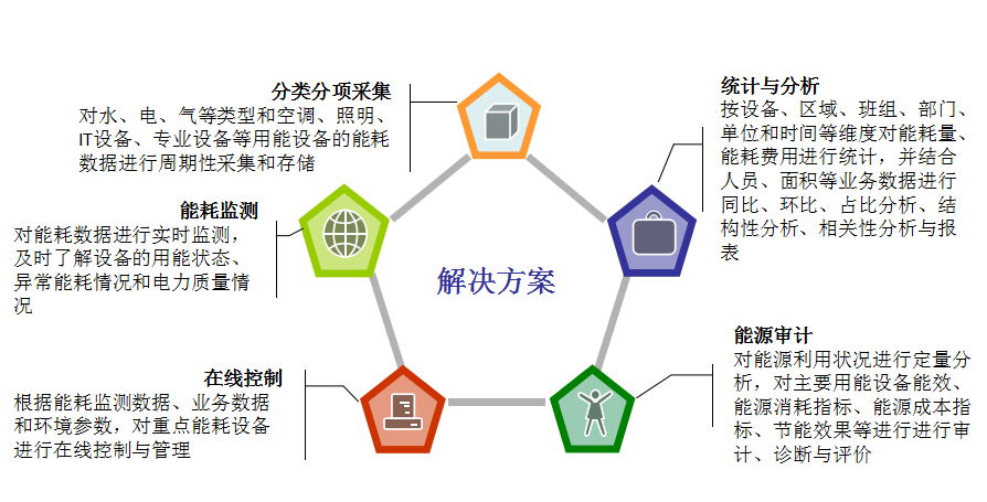 3. 建筑分類能耗分析 yc-9002能耗監(jiān)控系統(tǒng)在完成數(shù)據(jù)處理與上傳的同時,將建筑能耗進行分類分析,將建筑能耗分類為如下六類: