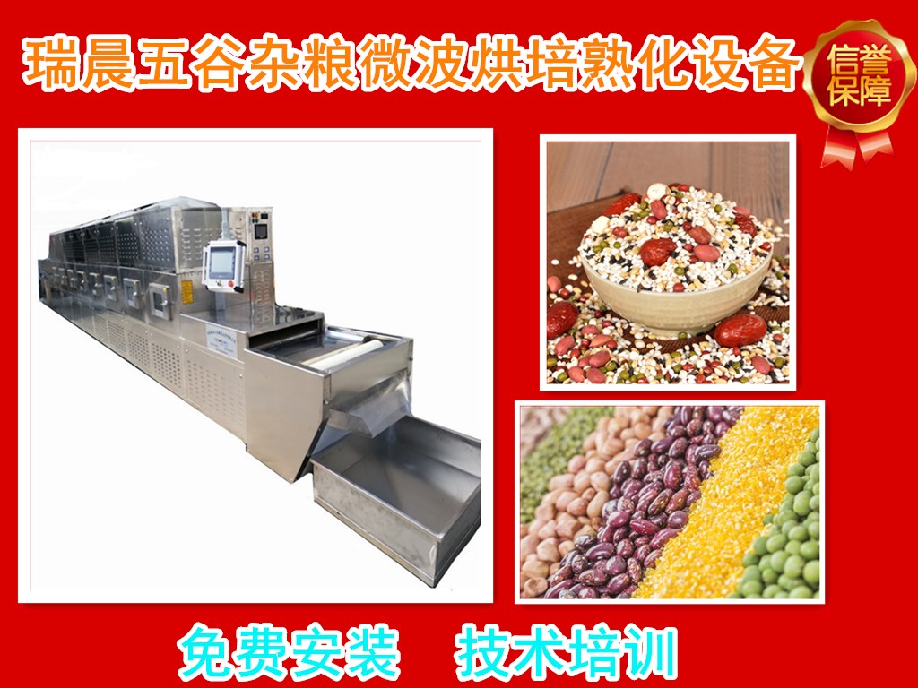 2、烘烤熟化均勻,微波加熱烘烤依靠微波是電磁場(chǎng)波激發(fā)五谷雜糧內(nèi)部水分子之間相互摩擦加熱。全自動(dòng)化流水線生產(chǎn)。