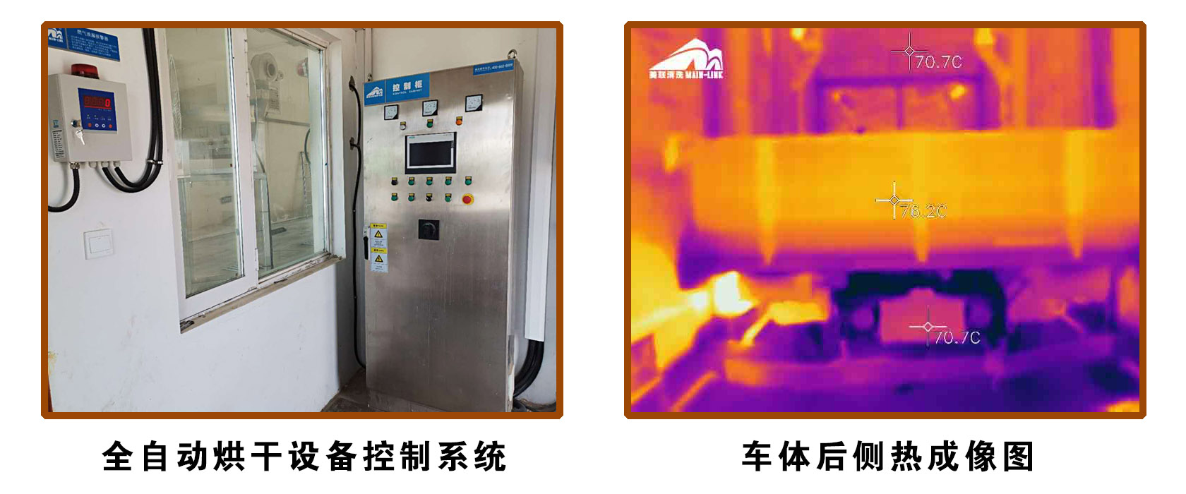 全自動烘干設(shè)備控制系統(tǒng)(左)和車輛后側(cè)熱成像圖(右)