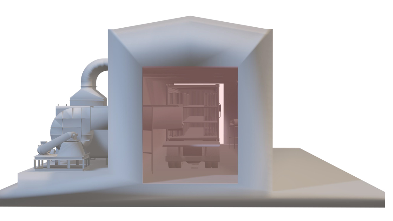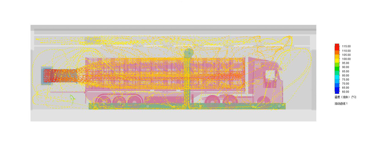 3、后置風機啟動,高溫熱風直吹車廂內(nèi)部,讓熱風貫穿整個車廂,確保對車廂和車廂內(nèi)各層地板進行高溫烘干;