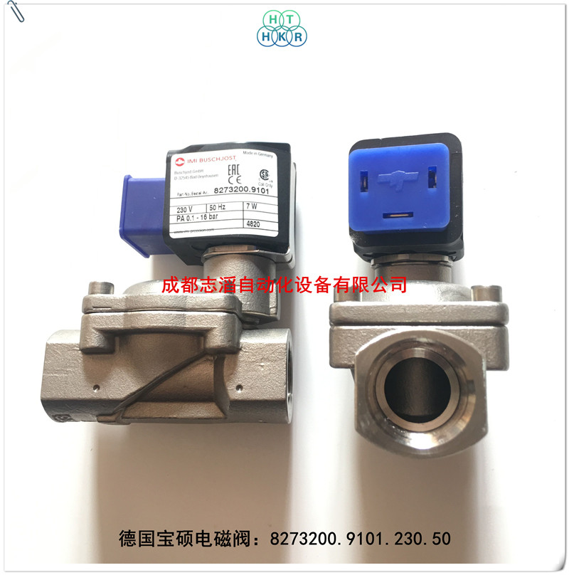 8273200.9101.230.50德國寶碩(imi buschjost)不銹鋼電磁閥技術參數簡介:接口尺寸g1/2、通徑12mm、kv值3.8立方米/h、工作壓力0.1-16bar(1.45-232psi)、閥體重量0.5kg、產地德國、配寶碩線圈9101(電壓230伏交流-功率損耗15/12伏安 、防護類別無、防護等級ip65、環(huán)境溫度范圍-25到50攝氏度、流體溫度可達110攝氏度、電氣連接din43650a型、線圈重量0.15kg、線圈產地為德國)