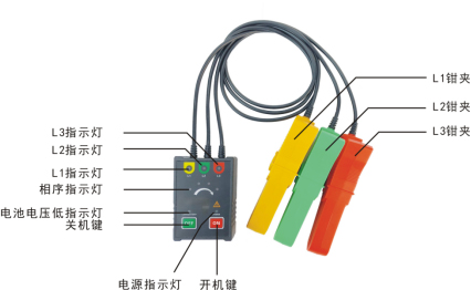 【斷路】l1或l2或l3燈不亮。聲音提示【正相】儀器發(fā)出間歇短鳴音;