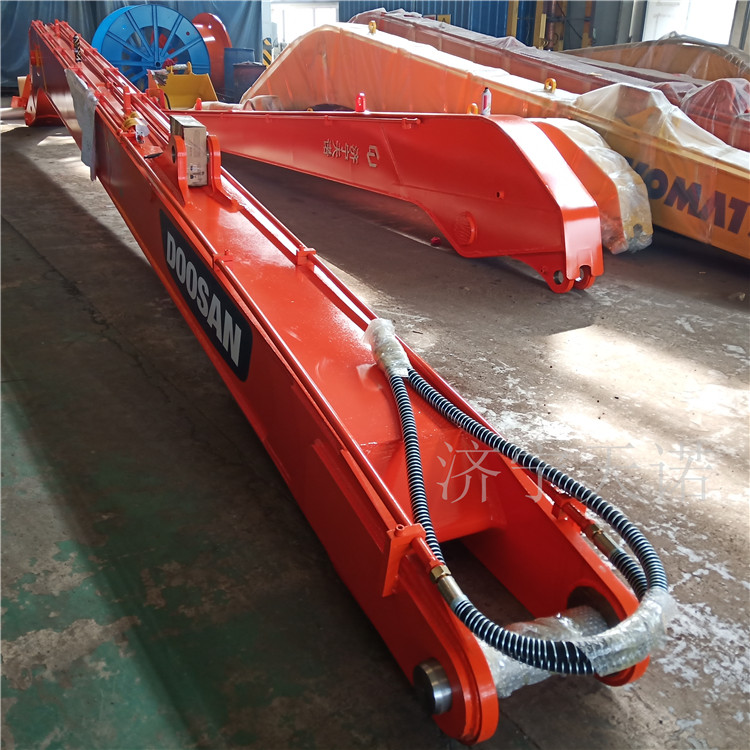 加長(zhǎng)臂主要用于河道清淤、港口建設(shè)、地鐵建設(shè)、建筑基地的挖掘,通過在原挖掘機(jī)的基礎(chǔ)上安 裝加長(zhǎng)臂,能完成標(biāo)準(zhǔn)大小臂沒法達(dá)到的距離,使挖掘機(jī)大限度的發(fā)揮其用途,廣泛作業(yè)于各種施工現(xiàn)場(chǎng),使效率和安 全性更高。