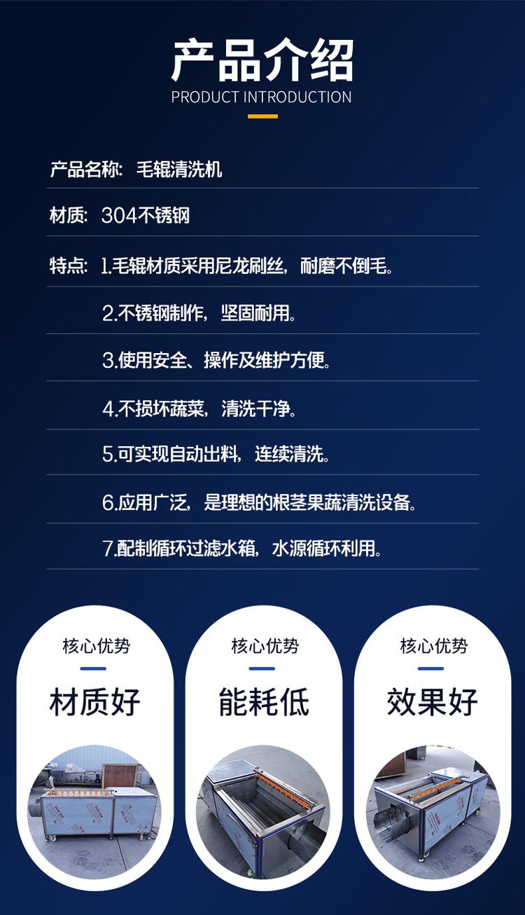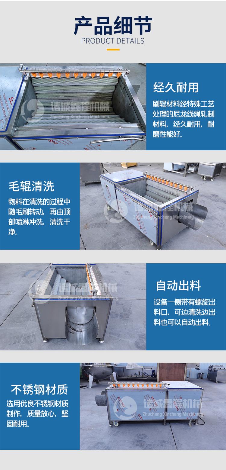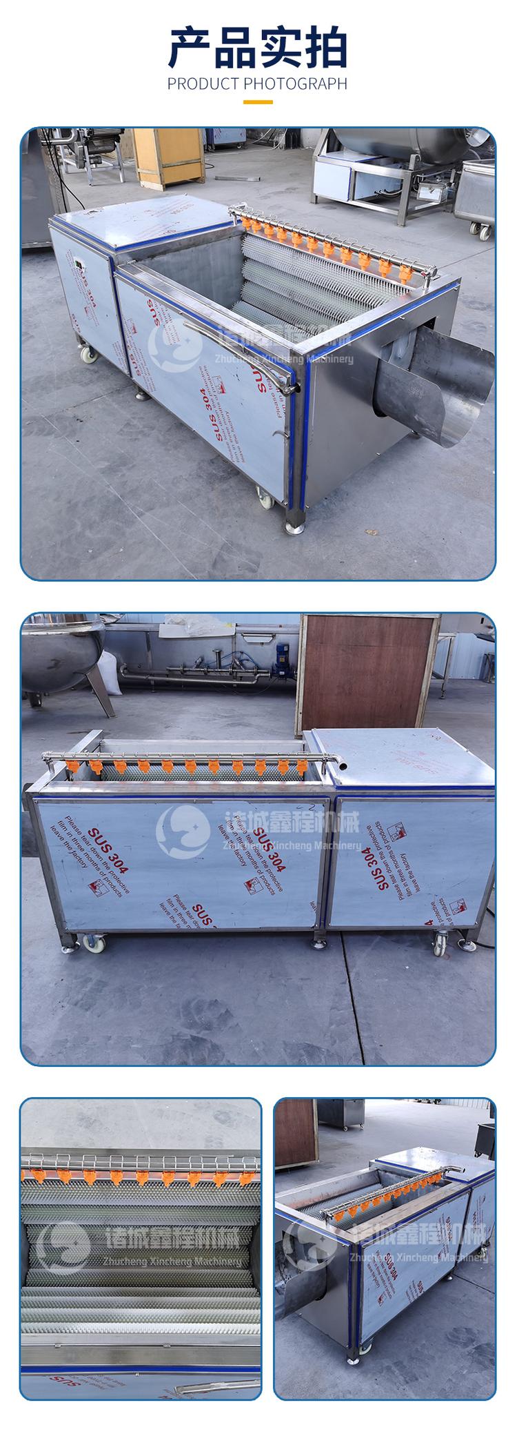 鑫程大型毛刷清洗脫皮機主要用于胡蘿卜、馬鈴薯、紅薯、蘋果、梨、紅果等根莖類果蔬的清洗。本機工作時既可連續(xù)出料也可間歇出料,且設計先進,操作方便,能耗低,衛(wèi)生、安 全、效率高,是理想的醬菜及蔬菜加工設備。