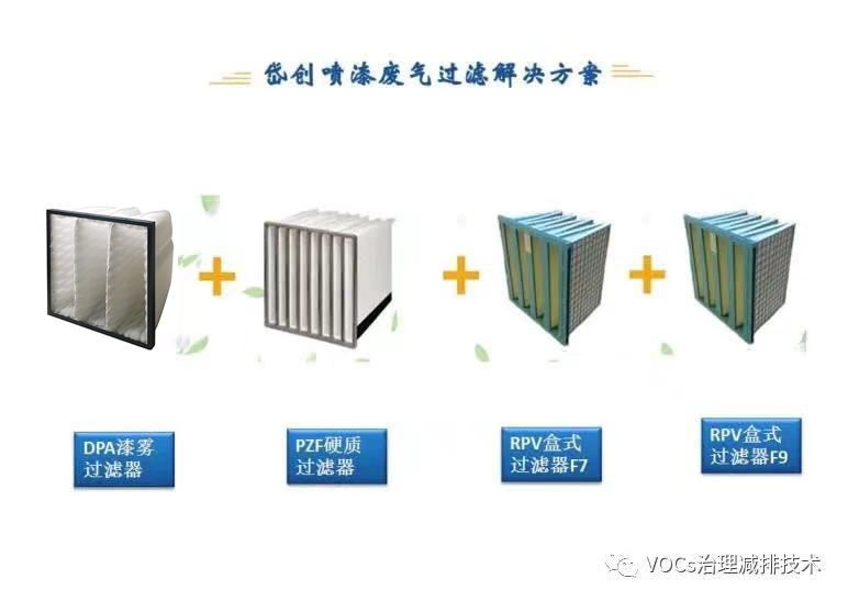 岱創(chuàng)建議,噴漆房廢氣先經(jīng)過四道過濾器來過濾固體顆粒,即dpa漆霧過濾器—f5袋式過濾器—f7中效袋式過濾器-f9袋式過濾。最后通過活性炭進(jìn)行吸附有_機(jī)_溶_劑 _。廢氣經(jīng)過以上的過濾,基本能夠達(dá)到排放要求。dpa漆霧過濾器,可以將10微米以上的漆霧過濾去除?諝饨(jīng)過兩道中效袋式過濾器和一道亞高效過濾器,基本可以將1微米以上其它類型固體顆粒去除,噴涂廢氣經(jīng)過上述四層過濾,廢氣中不再有_固體廢物,只含有_有_機(jī)_溶_劑 _。最后,含有_有_機(jī)_溶_劑 _的廢氣通過voc廢氣處理設(shè)備處理后,涂裝產(chǎn)生廢氣將被變成干凈的氣體可直接排放。