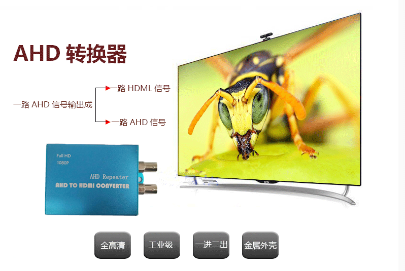 自主研發(fā)ahd轉(zhuǎn)換器,獨(dú)_家_支持ahd1080p攝像機(jī)轉(zhuǎn)換成hdmi信號(hào)輸出,支持一路ahd 視頻放大環(huán)出。