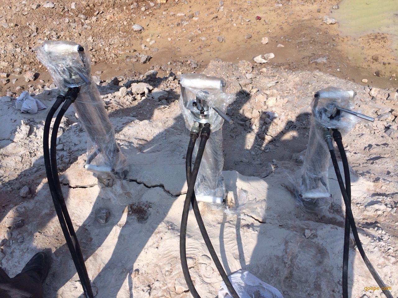 發(fā)潤牌液壓劈裂棒實際應(yīng)用。1向油站加入抗磨液壓油,需加滿。液壓油站下方有游標(biāo),參照游標(biāo)即可。2需接好三相四線380v。電機需正傳,順時針方向。3將高壓油管與劈裂棒相連接,油管顏色可分藍色,黑色,藍管高壓,黑管低壓。4打孔鉆機,90孔,孔深/淺1米2。能深不能淺4棒距50,與臨空面距離50.這是針對花崗巖開采標(biāo)準(zhǔn)。根據(jù)巖石巖質(zhì)而定。發(fā)潤液壓劈裂棒的工作。工作時間短,就是活塞從油缸伸出的時間。在1分鐘之間方可達到分裂巖石的明顯效果。將液壓劈裂棒放入90孔內(nèi),務(wù)必保證活塞全部放入。啟動電源,換動手動換向閥至藍色油管,開始進油,活塞開始伸出,在孔內(nèi)產(chǎn)生向臨空面方向的推力,巖石表面會出現(xiàn)分裂紋路。液壓油表顯示液壓達到120mp時,液壓站停止工作,處于保壓狀態(tài),意味著工作以完成。只要換動手動閥黑色油管,活塞收縮,人工提出。 依次重復(fù),操作簡單,方便易學(xué)。發(fā)潤液壓劈裂棒的優(yōu)勢相對水泥膨zhang劑 ,開采巖石需要等待的時間太過漫長,開采巖石速度太慢,人工打孔,工作量大但是方量提不上。還不可以重復(fù)利用。液壓劈裂機,也同屬我公司生產(chǎn)的設(shè)備,它只適用于小方量石方開采,就打孔來說,發(fā)潤fr-350液壓劈裂機,人工孔打孔只能打46的小孔,發(fā)潤牌液壓劈裂棒,機器打孔,需打90大孔。開采巖石速度快,節(jié)約成本,無聲開采巖石,液壓爆石方,****佳設(shè)備。液壓劈裂棒的主要領(lǐng)域。適用于各種堅硬巖石的無聲開采,花崗巖,火山巖,石英巖、玄武巖,石英斑巖、硅質(zhì)片巖,砂巖、石灰?guī)r、大理巖、白云巖、黃鐵礦等