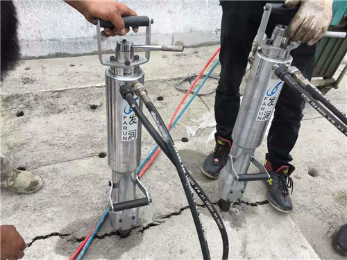 一、方法 液壓劈裂機(jī)破拆法,按操作要素 來(lái)解釋,即“液壓劈裂機(jī) 鑿巖機(jī) 人工”。具體操作模式為:1、根據(jù)剝離巖層或解體巖石的厚度、體積和斷裂層,確定巖石破拆的方向和橫截面、鑿孔深度、以及選取的劈裂機(jī)的數(shù)量(1~8支);