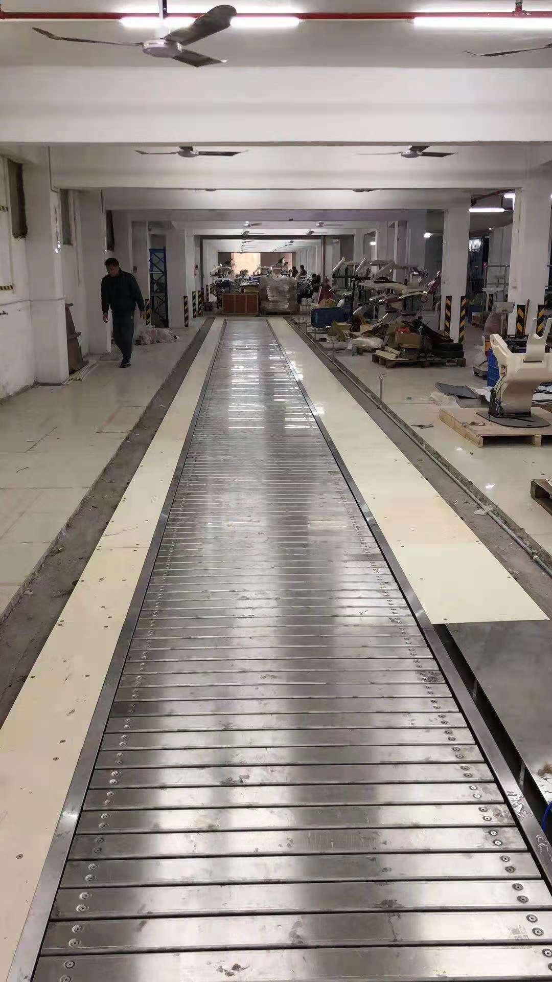 鏈板線以標準鏈板為承載面,由馬達減速機為動力傳動;我們可以通過多列鏈板并行,使鏈板輸送機做的很寬并形成差速,利用多列鏈板的速度差使多列輸送在無擠壓的情況下變?yōu)閱瘟休斔?從而滿足飲料貼標、灌裝、清洗等設備的單列輸送的要求