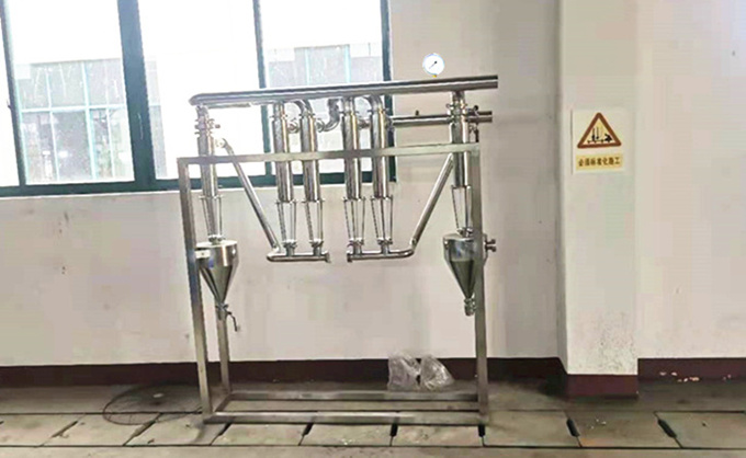 淀粉 除砂器是根據(jù)離心沉降和密度差的原理,當(dāng)水流在一定的壓力下從除砂進(jìn)水口以切向進(jìn)入設(shè)備后,產(chǎn)生強(qiáng)烈的旋轉(zhuǎn)運(yùn)動(dòng),由于砂和水密度不同,在離心力、向心力、浮力和流體曳力的共同作用下,使密度低的水上升,由出水口排出,密度大的砂粒由設(shè)備底部的排污口排出,從而達(dá)到除砂的目的。