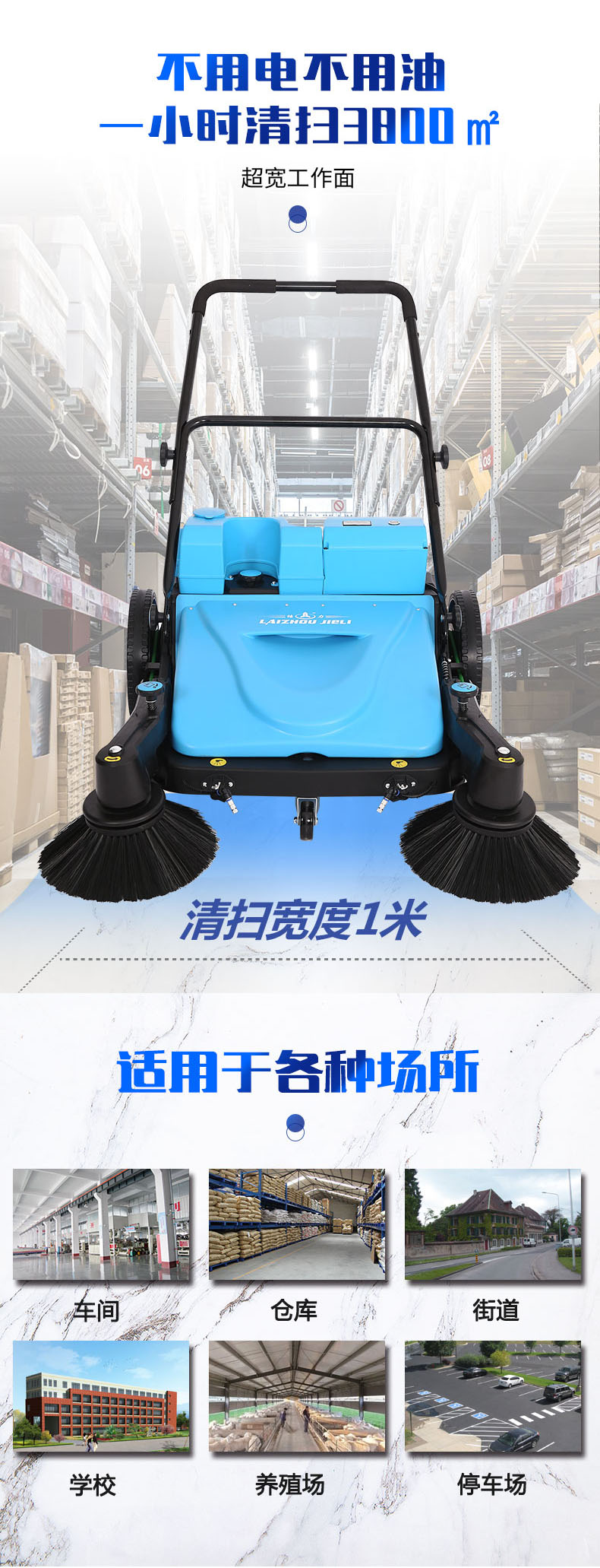該產(chǎn)品不但可以清掃粉 塵、土屑等細小粉 塵垃圾,還可以清掃鐵皮、木塊等大顆粒垃圾,可應(yīng)用于街道、公園、車間、庫房、居民小區(qū)等場所的保潔。