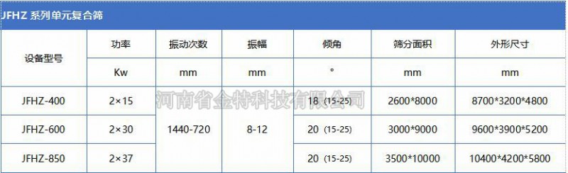 jfhz系列單元復(fù)合篩一般入料粒度≤300mm,分級粒度2~150mm。
