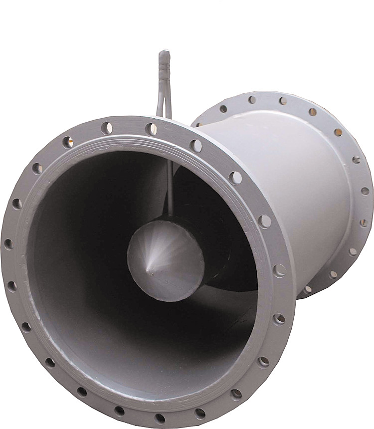 (1) 直管段要求低;v型錐流量計采用獨特的中心流線型結(jié)構(gòu)和翼形支撐件的整流作用,巧妙地解決了長直管段整流的問題,它能夠重塑流速曲線,在緊靠錐體上游和下游區(qū)域內(nèi),將流速不規(guī)則的流體直接整流成接近理想流體,可充分滿足伯努利定理的要求,獲得很高的測量精度和重復(fù)性。