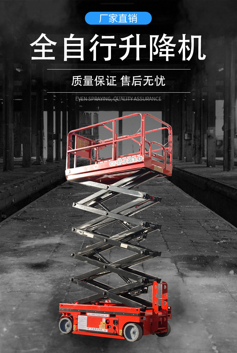 全自動液壓升降機又稱為:全自行(自行走)升降平臺是一種多功能高空作業(yè)設(shè)備。起升高度從4米至12多米不等?筛鶕(jù)個人要求定做特殊規(guī)格的自行式升降平臺。 自行式升降平臺采用優(yōu)質(zhì)結(jié)構(gòu)q235型材,單面焊接雙面成型工藝,原裝進口液壓泵站或國內(nèi)合資液壓泵站,升降機裝有平衡閥、自動保壓等安 全裝置,平臺安 全可靠耐用。