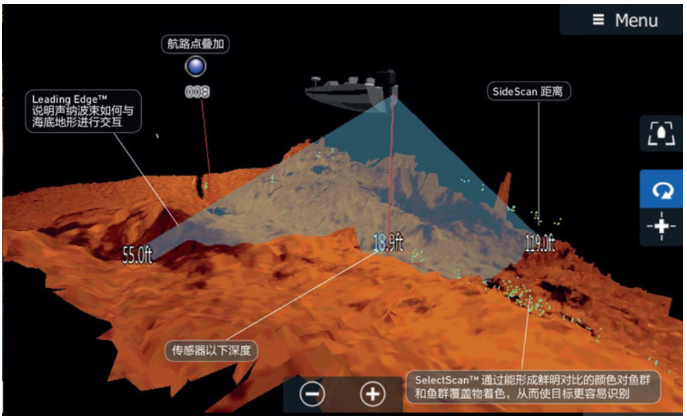 7.具有側(cè)掃下掃加聲吶探測(cè)功能,3d成像,結(jié)果更直觀。