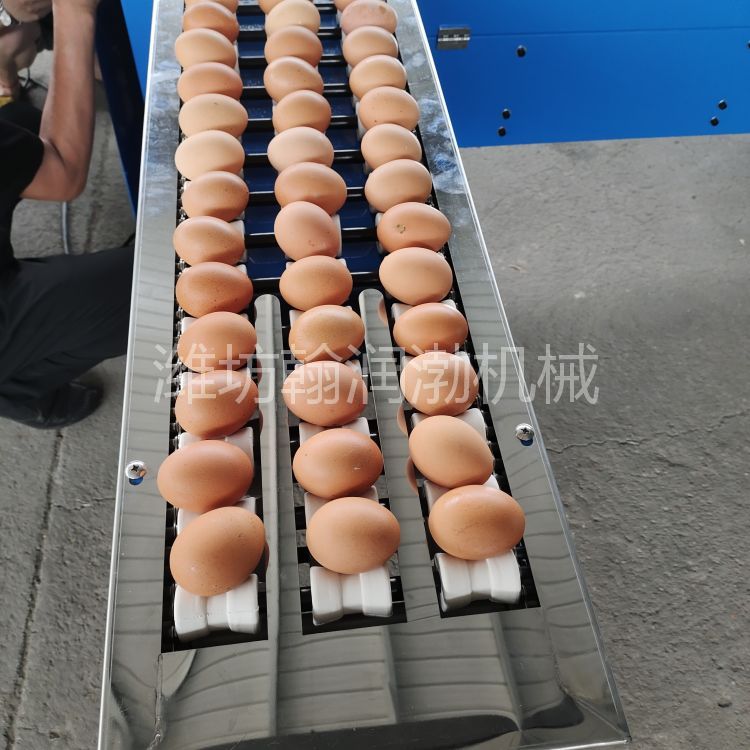 6、自滾動橡膠輪,自動調(diào)整蛋的排列;