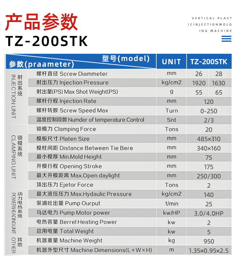 tz-200stk小型防水線立式注塑機(jī)廠家,可按照客戶需求定制機(jī)型。