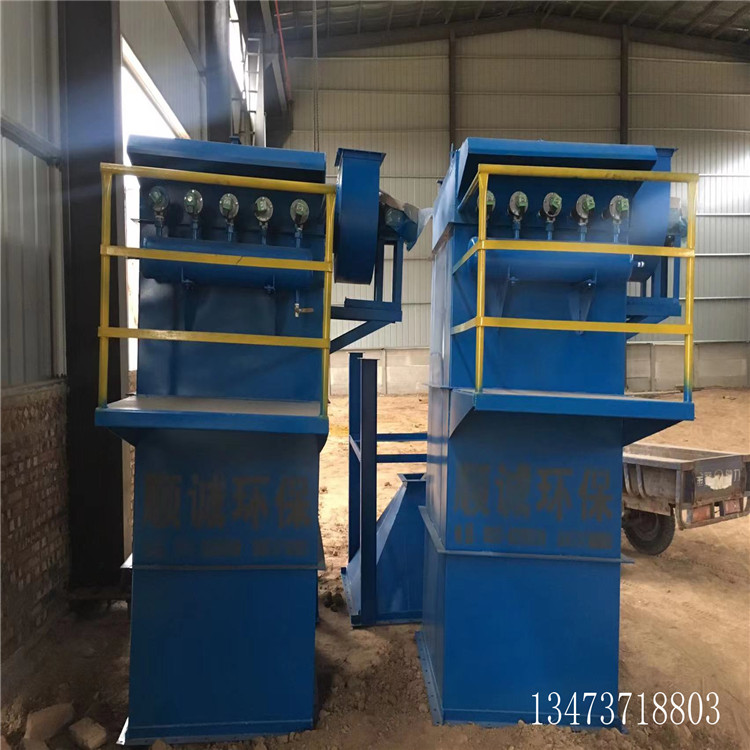 dmc型單機(jī)脈沖布袋除塵器基本結(jié)構(gòu):?jiǎn)螜C(jī)脈沖布袋除塵器由濾袋組件、導(dǎo)流裝置、脈沖噴吹系統(tǒng)、出灰系統(tǒng)、控制系統(tǒng)、離線保護(hù)系統(tǒng)、箱體等結(jié)構(gòu)組成。煙氣含塵氣體由除塵器導(dǎo)流管道進(jìn)入各單元分室,在導(dǎo)流裝置的作用下,大顆粒粉 塵經(jīng)除塵器分離后直接落入灰斗內(nèi),其余粉 塵均隨氣流均勻進(jìn)入各倉(cāng)室過(guò)濾區(qū)域內(nèi),過(guò)濾后的潔凈氣體透過(guò)濾袋經(jīng)上箱體、提升閥、排風(fēng)管排出室外。過(guò)濾工況的連續(xù)進(jìn)行會(huì)使濾袋表面積塵,當(dāng)達(dá)到一定厚度時(shí),清灰控制器裝置(控制差壓設(shè)定為定時(shí)或手動(dòng)控制)按設(shè)定程序關(guān)閉提升閥,控制當(dāng)前單元離線打開(kāi)電磁脈沖閥噴吹并抖落濾袋上的粉 塵。落入灰斗中的粉 塵經(jīng)由卸料器(卸灰閥)排出后,利用輸灰系統(tǒng)送出至***裝置。