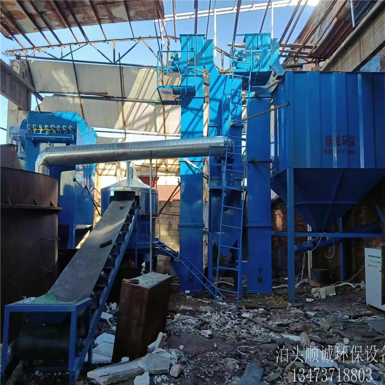 樹脂砂生產(chǎn)線是由磁選皮帶輸送機(jī)、震動破碎再生機(jī)、離心轉(zhuǎn)子二次二級再生機(jī)、砂庫、斗式提升機(jī)、移動雙臂連續(xù)式樹脂砂混砂機(jī)、脈沖反吹式除塵器等設(shè)備組成的。