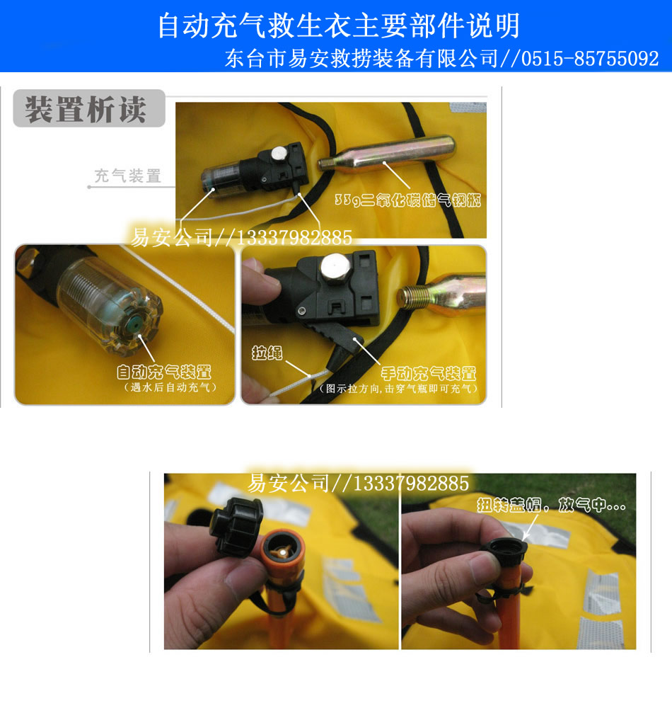 材質(zhì):tpu尼龍復(fù)合熒光橙,單雙氣囊, 手動(dòng)、自動(dòng)、手自動(dòng)充氣、17g二氧化碳儲(chǔ)氣鋼瓶。