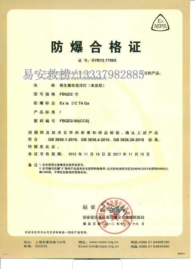 本產(chǎn)品符合gb3836.1-2000爆炸性氣體環(huán)境用電氣設(shè)備 第1部分:通用要求;gb3836.4-2000 爆炸性氣體環(huán)境用電氣設(shè)備 第4部分:本質(zhì)安全型"i";和1974年solas公約1996修正案、msc.81(70)相關(guān)要求。