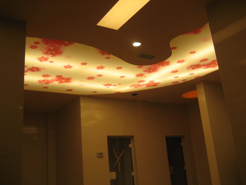 軟膜需要在實(shí)地測(cè)量出天花尺寸后,在工廠里制作完成。軟膜尺寸的穩(wěn)定性在攝氏 -15 度到 45 度。透光膜天花可配合各種燈光系統(tǒng)(如霓虹燈、熒光燈、led燈)營造夢(mèng)幻般、無影的室內(nèi)燈光效果。同時(shí)摒棄了玻璃或有機(jī)玻璃的笨重,危險(xiǎn)以及小塊拼裝的缺點(diǎn),已逐步成為新的裝飾亮點(diǎn)。