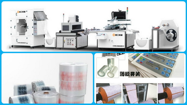 該機廣泛用于pet、pvc 、轉(zhuǎn)印紙(膜)、地暖膜、地熱膜、電熱膜、花紙、薄膜、銘板、柔性線路板、手機按鍵、3m膠、膠水、薄膜開關(guān)、商標鐳射、刮刮卡、不干膠標貼、桶裝紙、織帶、鋁箔、銅箔等卷筒材料的絲網(wǎng)印刷。
