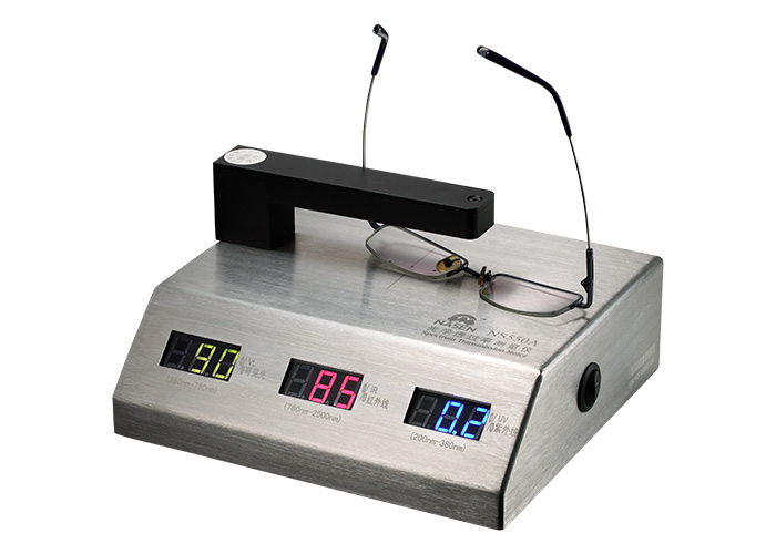 2:將被測(cè)試物放入測(cè)試位置。三個(gè)顯示器分別顯示被測(cè)物對(duì)紫外線,紅外線和可見(jiàn)光的透過(guò)率。