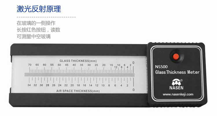 ns500中空玻璃測厚儀于測量單層玻璃,夾層玻璃(中空玻璃)和柱型玻璃管等的厚度。尤其適用于普通刻度尺或卡尺不能或不易操作的測量場合,如玻璃瓶壁厚和建筑夾層玻璃窗厚度的測量。對于中空玻璃厚度的測量,同時測得各層玻璃及中間空氣層的厚度。