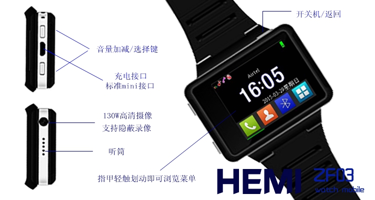 新款智能手表手機藍牙伴侶可分離式腕戴手機zf03