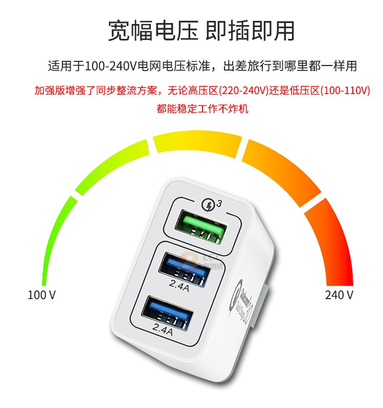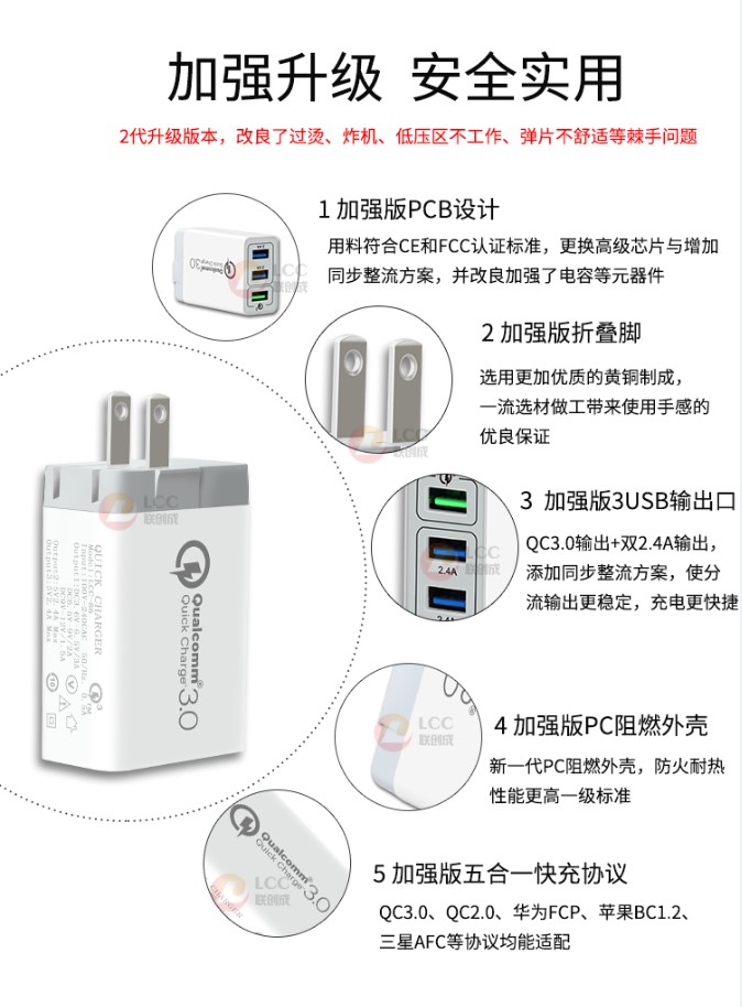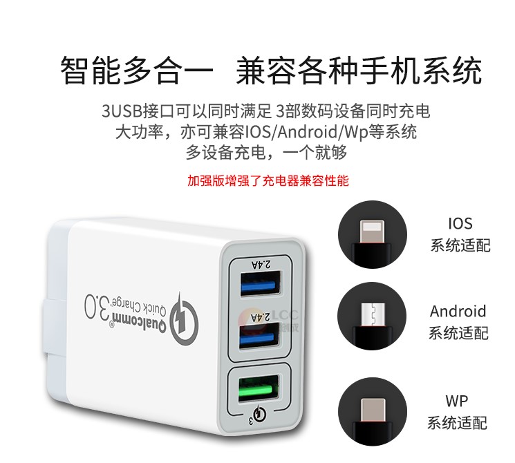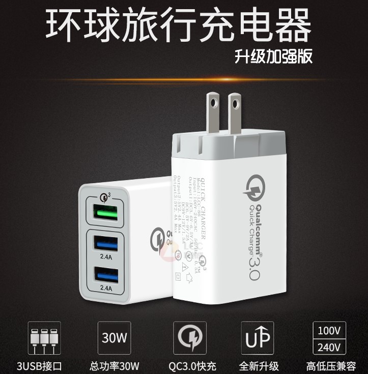產(chǎn)品名稱:qc3.0 3usb快充充電器-加強(qiáng)版