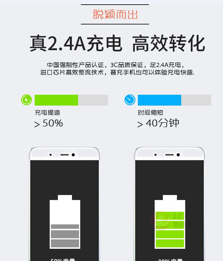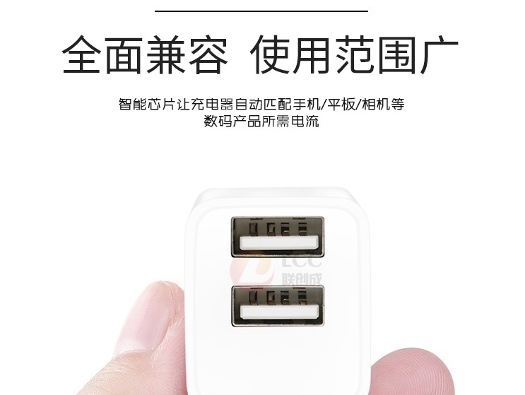 1.聯(lián)創(chuàng)成主推qc快充和pd快充,旅充已開發(fā)qc2.0(單usb)、qc3.0(單usb、雙usb、3usb)和pd快充;車充涵蓋qc2.0(雙usb)、qc3.0(單usb、3usb、雙usb、4usb),