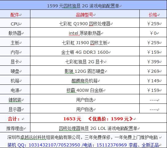 深圳市卓越遠(yuǎn)創(chuàng)科技組裝電腦有限公司,深圳市華強(qiáng)北組裝電腦有限公司,深圳華強(qiáng)北diy組裝臺(tái)式電腦批發(fā),深圳市南山組裝電腦批發(fā),深圳市龍華組裝電腦批發(fā)商城,深圳市龍崗組裝電腦批發(fā),深圳市羅湖組裝電腦批發(fā)商城,深圳市組裝電腦全程免費(fèi)送貨上門,三年免費(fèi)保修,一年免費(fèi)上門維護(hù)電腦,原裝正品,假一賠十,誠信經(jīng)營,質(zhì)量第一,本公司主要:diy組裝臺(tái)式電腦,組裝服務(wù)器,品牌臺(tái)式電腦,辦公耗材批發(fā),電腦維修,電腦配件批發(fā)。以下給大家介紹一款四核游戲電腦配置,辦公用也可以,運(yùn)行速度快,打開瀏覽器快,多開qq不卡機(jī)。如有需要更改,請(qǐng)聯(lián)系我們的工作人員