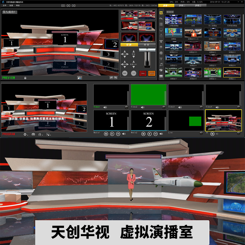 vsm 4k真三維虛擬演播室系統(tǒng)設(shè)備界面簡潔,用戶操作界面和系統(tǒng)設(shè)置界面讓使用者輕松掌握:系統(tǒng)采用簡單易行的操作方式,大幅度減少了操作者的學(xué)習(xí)時(shí)間,操作人員只需像平常使用電腦一樣拖放鼠標(biāo),便可以實(shí)現(xiàn)系統(tǒng)功能的所有操作。從而減少了使用者時(shí)間