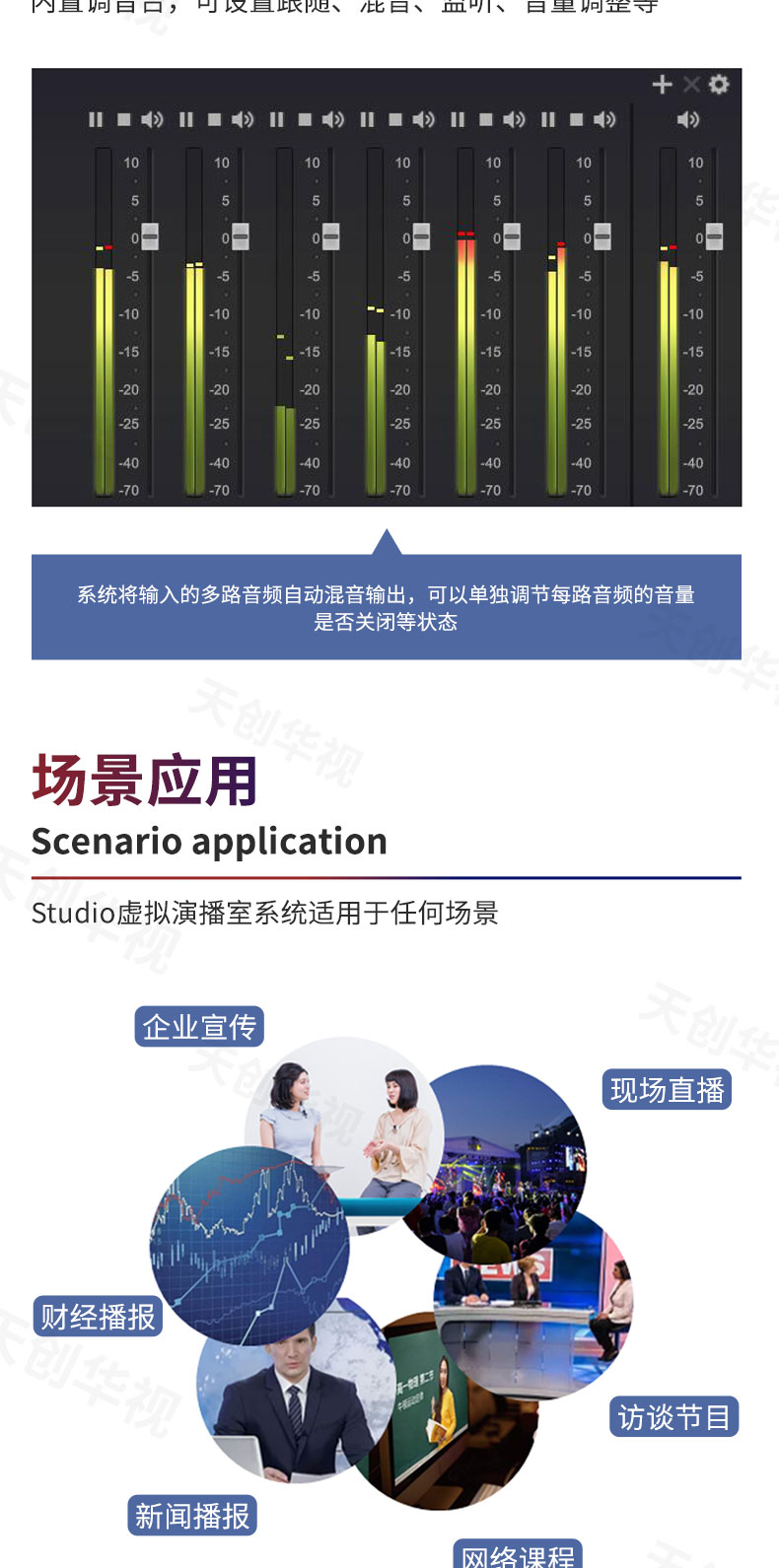 擬演播室系統(tǒng)) ,充分發(fā)揮您的想象力和創(chuàng)造力,便可滿足任何電視節(jié)目現(xiàn)場直播、后期制作及應用的需要。并且,天創(chuàng)