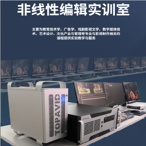 非線性編輯實(shí)訓(xùn)室主要為教育技術(shù)學(xué)、廣告 學(xué)、戲劇影視文學(xué)、數(shù)字媒體技術(shù)、藝術(shù)設(shè)計(jì)、文化產(chǎn)業(yè)與管理等與影視制作相關(guān)的課程提供實(shí)驗(yàn)教學(xué)與服務(wù),包括實(shí)驗(yàn)課程教學(xué)、電視節(jié)目的拍攝與制作、學(xué)生參賽作品的攝編等。主要實(shí)驗(yàn)課程有非線性編輯、攝像基礎(chǔ)、編導(dǎo)基礎(chǔ)、電視教材編導(dǎo)與制作、影視攝像與剪輯、影視廣告 制作、電視節(jié)目編導(dǎo)等。