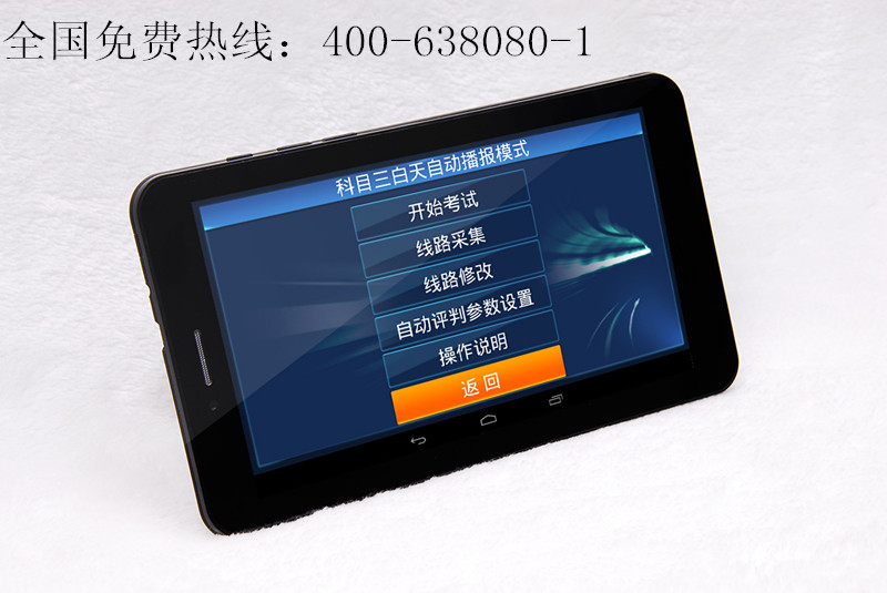 功能:自動播報、點位校準、支持關(guān)于速度類項目的自動打分、夜間燈光、視頻教學、學員管理,支持線上網(wǎng)、藍牙傳輸,玩游戲,看視頻,做導(dǎo)航(凱立德或高德),支持科目一、科目二、科目三、科目四。帶導(dǎo)航、gps,支持南京多倫、安 徽三聯(lián)、精英智通、海格爾、華燕等考車系 統(tǒng)。