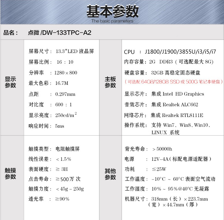 瀏覽:383次[供應(yīng)]dw-133tpc-a 廠家直銷觸摸一體機(jī)工業(yè)平板電腦工控機(jī)