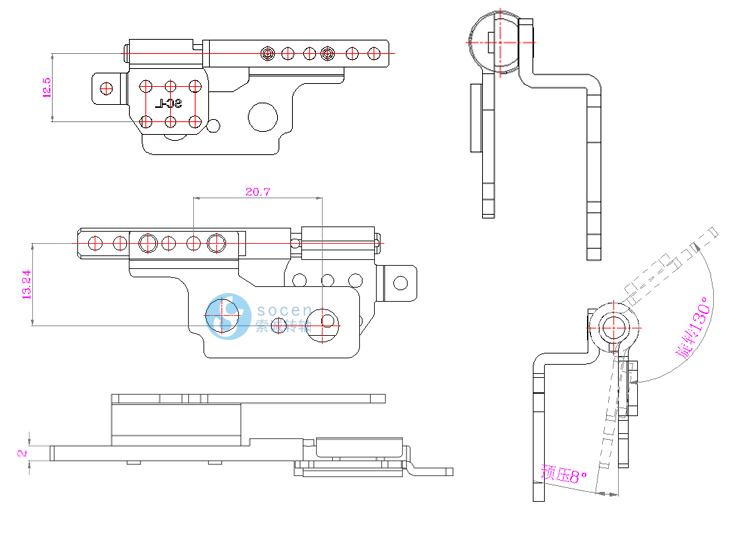 2.旋轉(zhuǎn)角度:旋轉(zhuǎn)-8~130度,-8度自鎖,出貨角度130度