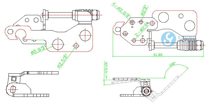 3.產(chǎn)品預壓角-7±2°,限位角度135°±3°,