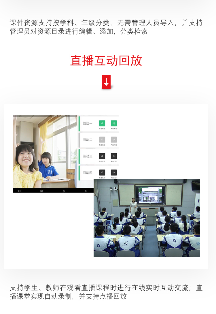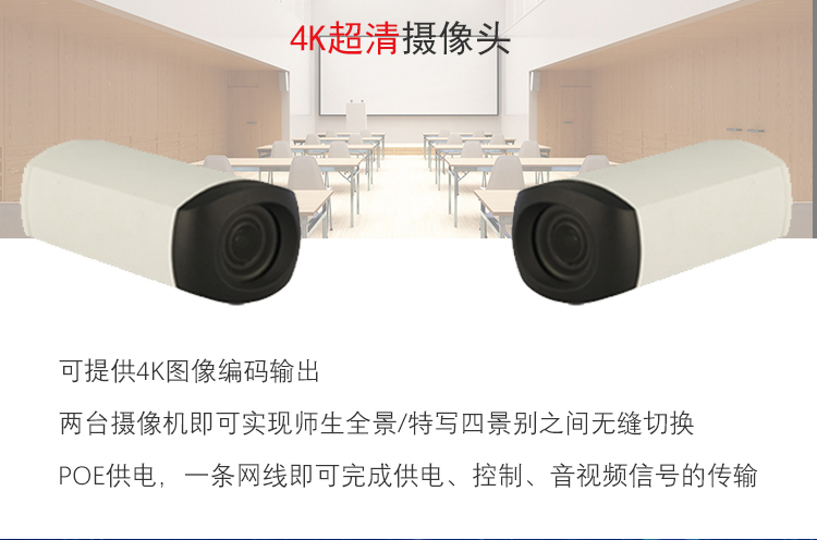 4.錄播主機(jī)支持2機(jī)位4景別,2路4k電子云臺(tái)攝像機(jī)接入,顯示“教師特寫(xiě)”、“教師全景”、“學(xué)生特寫(xiě)”和“學(xué)生全景”4個(gè)景別的錄制;